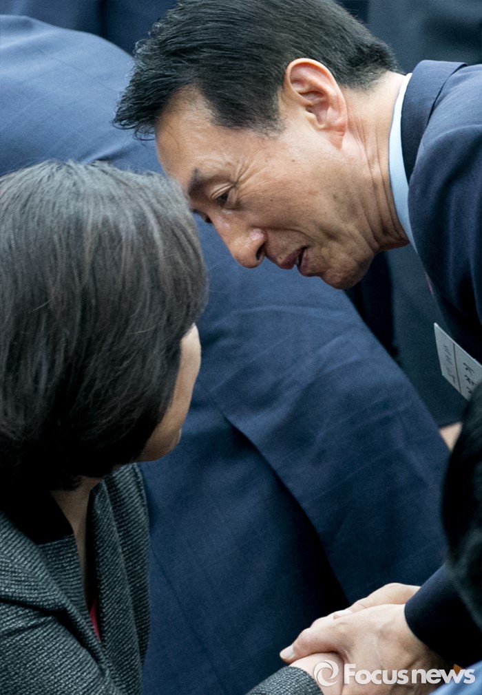 (서울=포커스뉴스) 26일 오전 서울 여의도 국회에서 열린 새누리당 20대 총선 당선자 워크숍에 참석한 김석기 당선인이 동료 당선인들과 인사하고 있다.