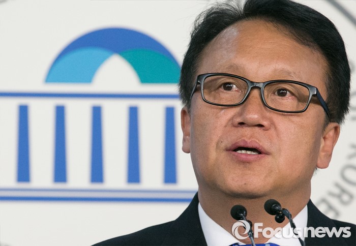 (서울=포커스뉴스) 민병두 더불어민주당 의원이 29일 오후 서울 여의도 국회 정론관에서 원내대표 출마 기자회견을 하고 있다.