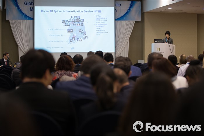 (서울=포커스뉴스) 27일 오전 서울 중구 프레지던트호텔에서 열린 '잠복결핵감염 관리 정책 국제회의'에서 고운영 질병관리본부 센터장이 '한국 현황, 도전 그리고 향후 계획'이라는 주제로 발표를 하고 있다.