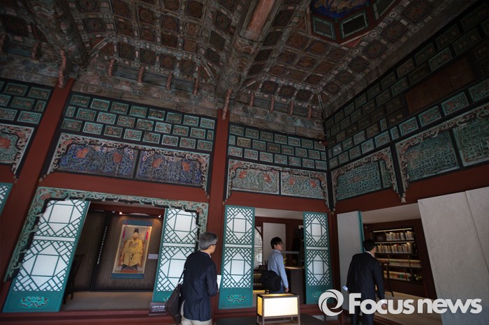 (서울=포커스뉴스) 27일 오후 서울 종로구 경복궁 집옥재 내부를 취재진들이 둘러보고 있다.