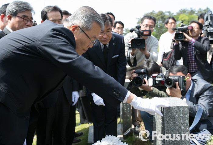 (광주=포커스뉴스) 김종인 더불어민주당 비대위 대표와 20대 총선 당선인 및 광주·전남지역 낙선 인사들이 25일 오전 광주 북구 국립 5·18민주묘지를 방문해 민주열사 묘역을 둘러보고 있다.