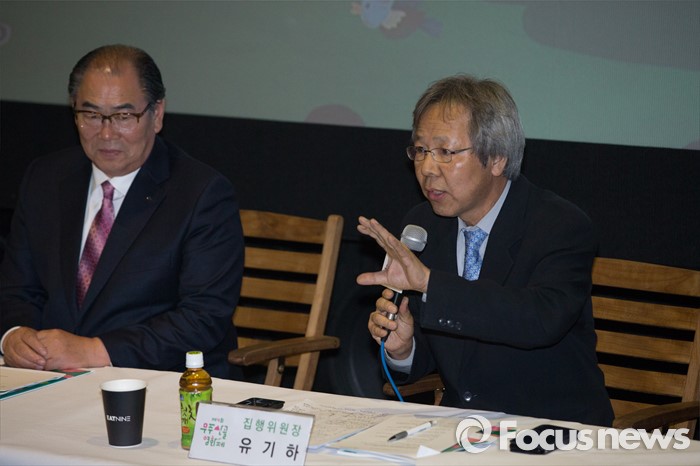 (서울=포커스뉴스) 26일 오전 서울 동작구 아트나인에서 열린 '제4회 무주산골 영화제' 기자간담회에 참석한 유기하 집행위원장이 관련 설명을 하고 있다.