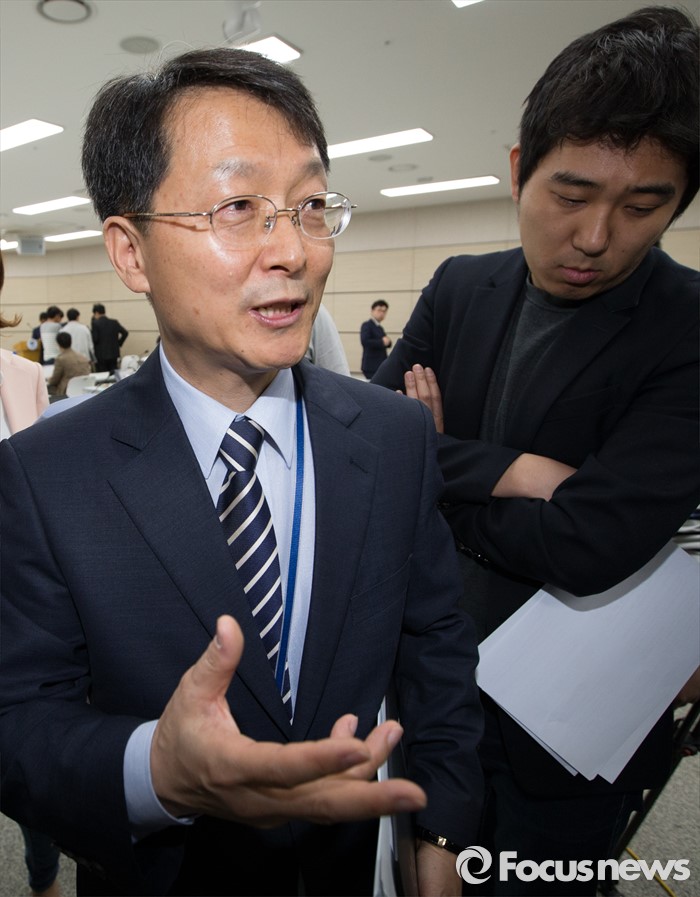 (세종=포커스뉴스) 이진석 교육부 학술장학지원관 2일 오전 세종시 정부세종청사 교육부 브리핑룸에서 법학전문대학원 입학실태조사 결과 발표를 마치고 취재진의 질문에 답변하고 있다.