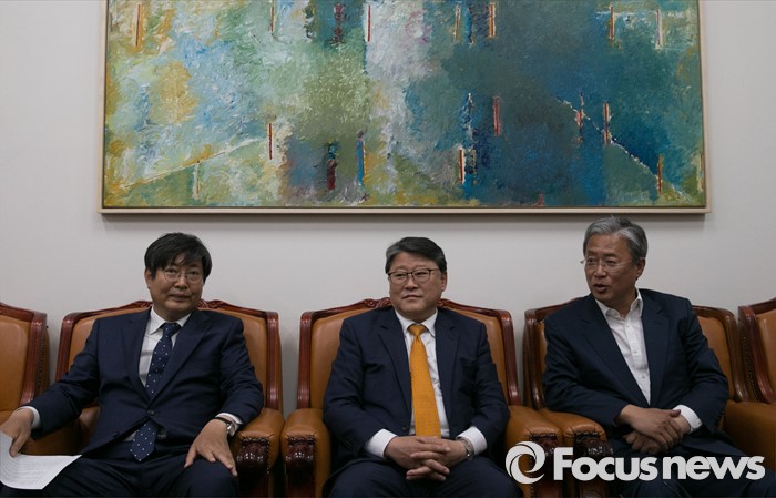 (서울=포커스뉴스) 조원진(가운데) 새누리당 원내수석부대표, 이춘석(왼쪽) 더불어민주당 원내수석부대표, 유성엽 국민의당 원내수석부대표가 27일 오후 서울 여의도 국회에서 19대 마지막 임시국회 의사일정 및 쟁점법안 등 논의를 위한 회동을 하고 있다.