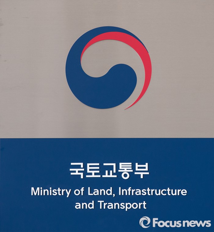(세종=포커스뉴스) 25일 오전 세종시 정부세종청사 국토교통부 입구에 국토교통부 상징로고가 설치돼 있다.