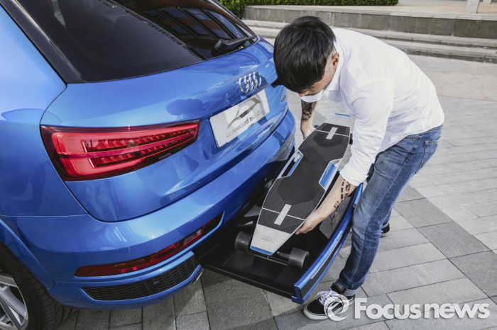 콘셉트 카 내부의 인포테인먼트 시스템은 실시간 교통량 데이터를 기반으로 가장 빠른 이동성을 계산해내고 계획된 시간을 염두에 두어 목적지까지 안내한다. 뒷 범퍼에 부착된 롱보드 배터리로 최대 12㎞를 이동할 수 있으며, 최고속도는 30㎞/h이다.아우디의 '아우디 커넥티드 모빌리티 콘셉트 카' <사진제공=아우디 코리아>