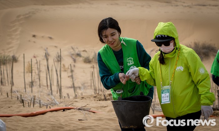 (다라더치/중국=포커스뉴스) 25일 오후 중국 내몽고 다라더치 쿠부치사막에서 2016 미래숲 15기 녹색봉사단원들이 나무 심기 작업을 하고 있다. 미래숲 녹색봉사단은 이번 봉사활동을 통해 황폐화된 사막에 나무 심기 및 각국 청년들과 우호를 증진을 위한 교류 활동을 전개했다.