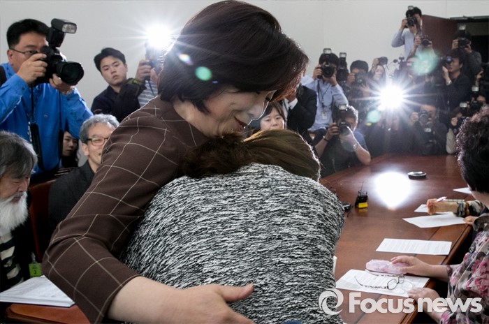 (서울=포커스뉴스) 심상정 정의당 상임대표가 28일 오전 서울 여의도 국회에서 열린 가습기 살균제 3, 4등급 피해자 의료기록 분석 결과 및 피해 진상규명을 위한 간담회에 참석해 한 피해자를 격려하고 있다.