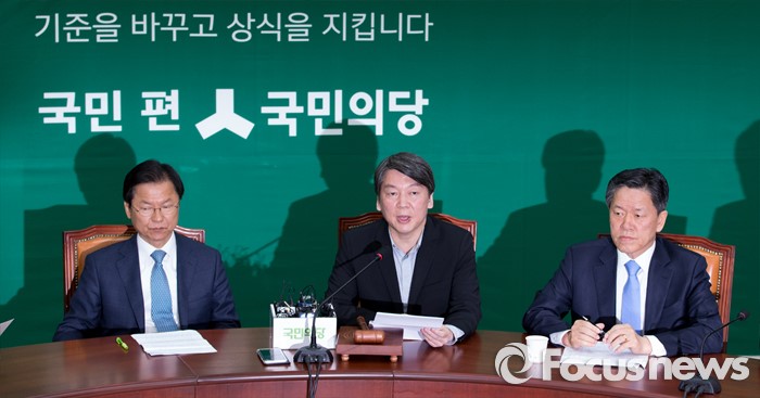 (서울=포커스뉴스) 안철수 국민의당 상임공동대표가 25일 오전 서울 여의도 국회에서 최고위원회의에 참석해 모두발언을 하고 있다. 왼쪽부터 천정배 공동대표, 안 대표, 주승용 원내대표.