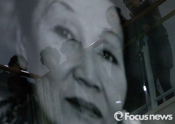 천 화백의 차녀 김정희씨는 지난해 10월 서울시립미술관에서 기자회견을 열고 "어머니께서 살아계실 때 ‘목에 칼이 들어와도 미인도는 내 작품이 아니다’라고 말씀하셨다"면서 "미인도는 위작이 확실하다"고 주장해 논란에 불을 지폈다.30일 오전 '故 천경자 화백 추도식'이 열린 서울시립미술관을 찾은 시민들이 행사를 바라보고 있다. 2015.10.30 조종원 기자