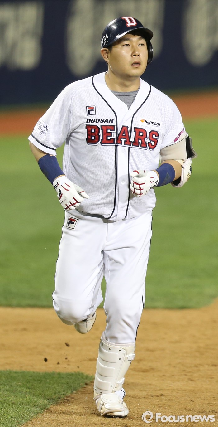 (서울=포커스뉴스) 26일 서울 잠실구장에서 열린 2016 프로야구 SK-두산 경기 8회말 1사후 두산 양의지가 좌중월 1점 홈런을 치고 홈인하고 있다.