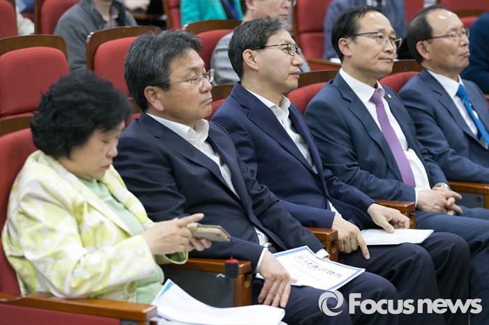 (서울=포커스뉴스) 28일 오후 서울 여의도 국회 의원회관에서 열린 더불어민주당의 호남 총선 평가 성찰과 대안 토론회에 참석한 의원들이 토론회를 지켜보고 있다. 왼쪽부터 인재근, 강기정, 김성주, 홍영표 의원, 최운열 비례대표 당선인.