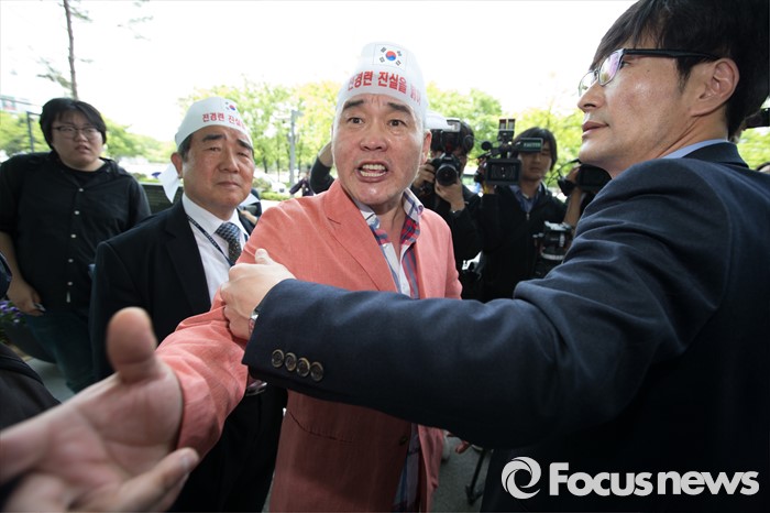 | △ 항의하는 애국국민운동대연합 오천도 대표 |
