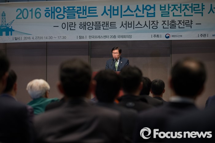 (서울=포커스뉴스) 김영석 해양수산부 장관이 27일 오후 서울 중구 한국프레스센터에서 열린 2016 해양플랜트 서비스산업 발전전략 세미나 개회식에 참석해 환영사를 하고 있다.