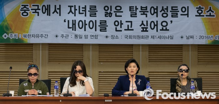 (서울=포커스뉴스) 26일 오후 서울 여의도 국회 의원회관에서 북한자유주간 주최, 통일맘연합 주관으로 열린 중국과 제3국에서 자녀와 헤어진 탈북여성들의 호소, '내 아이를 안고 싶어요' 증언대회에 참석한 북한 여군 장교 출신 탈북 방송인 김정아(오른쪽 두번째) 씨와 여성들이 발언하고 있다.