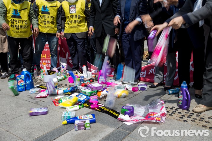 또 일각에서는 옥시 측이 제품의 유해성이 담긴 보고서를 제외한 뒤 유리한 보고서만 제출했다는 의혹이 일기도 했다.25일 오전 서울 종로구 광화문 광장에서 옥시 가습기 살균제 피해 가족 및 환경단체 관계자들이 옥시 상품 불매를 촉구하는 퍼포먼스를 펼치고 있다. 2016.04.25 강진형 기자