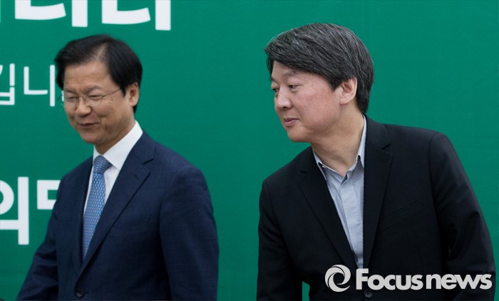 (서울=포커스뉴스) 안철수(오른쪽) 국민의당 상임공동대표와 천정배 공동대표가 25일 오전 서울 여의도 국회에서 최고위원회의에 참석하기 위해 입장하고 있다.