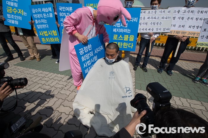 | △ 국회앞, 사법시험 준비 고시생 삭발식 |