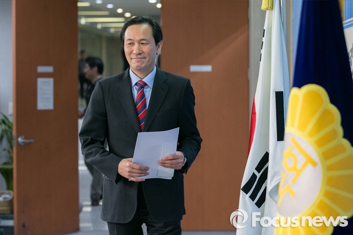 (서울=포커스뉴스) 우상호 더불어민주당 의원이 29일 오후 서울 여의도 국회 정론관에서 당 원내대표 출마 기자회견을 위해 입장하고 있다.