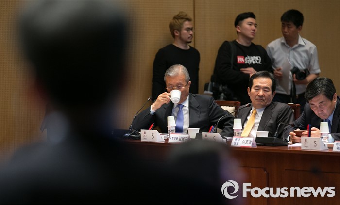 (광주=포커스뉴스) 김종인 더불어민주당 비대위 대표 등 의원들이 25일 오후 광주과학기술원(GIST, 지스트)을 방문해 문승현 총장의 업무보고를 듣고 있다. 오른쪽부터 이종걸 원내대표, 정세균 의원, 김 대표.