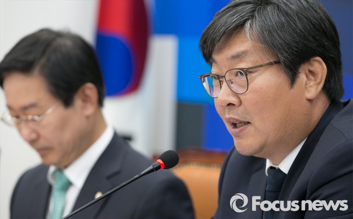 (서울=포커스뉴스) 29일 오전 서울 여의도 국회에서 열린 더불어민주당 보수단체 불법자금지원 의혹규명 진상조사 태스크포스(TF) 1차 회의에 참석한 이춘석 위원장이 인사말을 하고 있다.