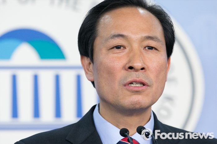 (서울=포커스뉴스) 우상호 더불어민주당 의원이 29일 오후 서울 여의도 국회 정론관에서 당 원내대표 출마 기자회견을 하고 있다.