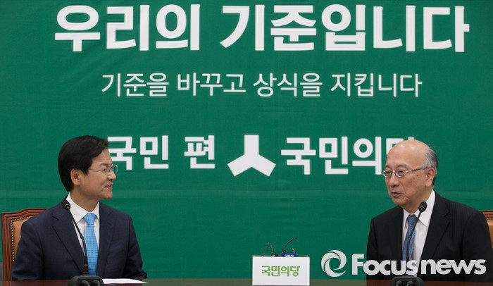 (서울=포커스뉴스) 천정배(왼쪽) 국민의당 공동대표가 29일 오후 서울 여의도 국회를 방문한 벳쇼 코로 주한일본대사와 면담을 하고 있다.