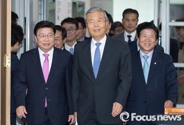 (대전=포커스뉴스) 김종인 더불어민주당 비대위 대표와 이종걸 원내대표를 비롯한 더민주 의원 및 당직자들이 28일 오후 대전시청을 방문한 가운데 대회의실에서 열린 더불어민주당-대전시 정책간담회에서 김종인 대표가 간담회장으로 입장하고 있다.