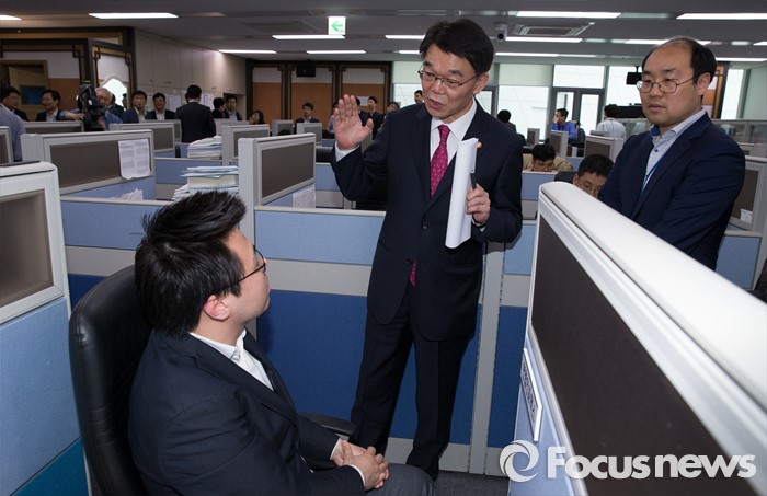 (세종=포커스뉴스) 강호인 국토교통부장관이 27일 오후 세종시 정부세종청사 국토부 기자실에서 맞춤형 주거지원을 통한 주거비 경감 방안 발표를 마치고 취재진에게 설명을 하고 있다.