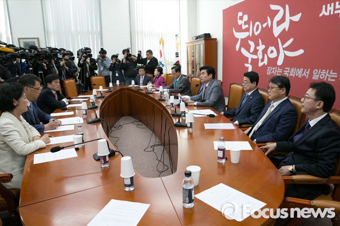 (서울=포커스뉴스) 원유철(오른쪽 네번째) 새누리당 원내대표가 25일 오전 서울 여의도 국회에서 열린 상임위원장 · 간사단 연석회의에 참석해, 모두발언하고 있다.