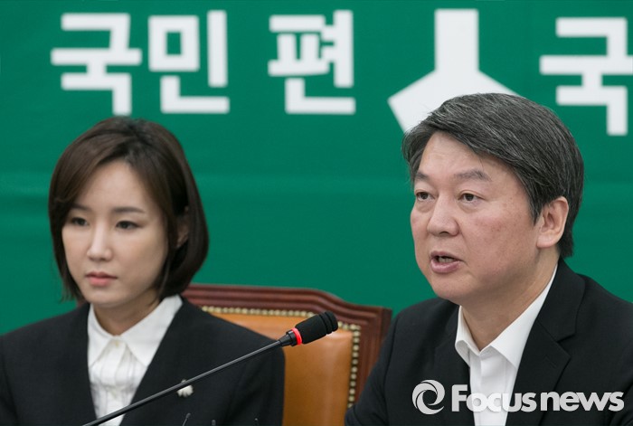 (서울=포커스뉴스) 2일 오전 서울 여의도 국회에서 열린 국민의당 최고위원회의에 참석한 안철수 상임공동대표가 의료사고 피해구제 및 의료분쟁 조정 등에 관한 법률 일부개정법률안(일명 신해철법)과 관련해 발언하고 있다. 왼쪽은 국민대표 직함으로 참석한 故 가수 신해철의 아내 윤원희 씨.