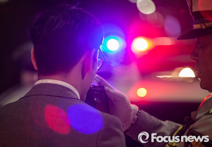 (서울=포커스뉴스) 대검찰청과 경찰청이 음주운전 근절을 위한 '음주운전사범 단속 및 처벌 강화 방안'을 첫 시행한 25일 오후 서울 송파구 인근에서 경찰이 음주단속에 적발된 시민에게 음주 측정기 테스트를 하고 있다.