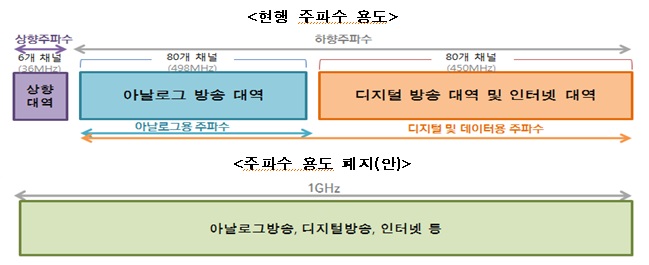 우선 미래부는 케이블망의 유선주파수 대역별 용도 지정을 폐지하고, 사업자 판단에 따른 자율적 활용을 가능하게 할 방팀이다. 무선주파수와 달리 차폐망을 이용하는 케이블망의 유선주파수는 혼간섭의 염려가 적어 사업자 자율로 운용해도 주변 영향이 적다. 하지만 그동안 필요이상으로 주파수의 용도를 제한해오면서 특정구간의 채널이 포화되는 등 주파수 효율성이 떨어지는 문제가 발생했다.
