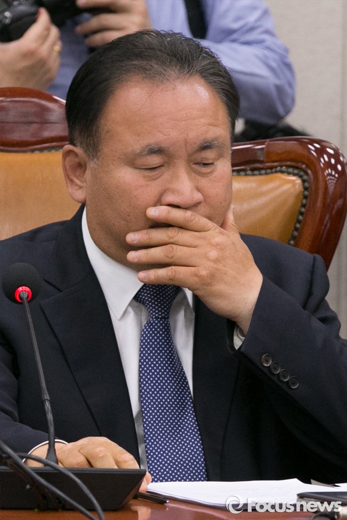 (서울=포커스뉴스) 이상민 법사위원장이 28일 오후 서울 여의도 국회 법제사법위원회 전체회의장에서 생각에 잠겨 있다.