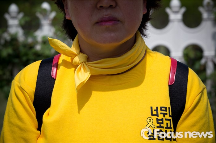 (서울=포커스뉴스) 25일 오전 서울 여의도 국회의사당 정문 앞에서 4월 16일의 약속국민연대 관계자들이 세월호 진상규명 특별법 개정 및 특검 실시 촉구 기자회견을 하고 있다.