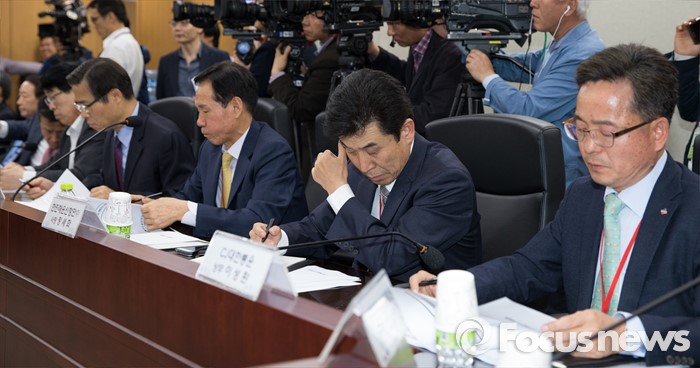 (세종=포커스뉴스) 정세화 한진해운신항만 사장이 25일 오후 세종시 정부세종청사 해양수산부 중회의실에서 열린 해운시장 및 해운동맹 재편 관련 대책회의에 참석해 잠시 얼굴을 만지며 생각에 잠긴 모습을 보이고 있다.