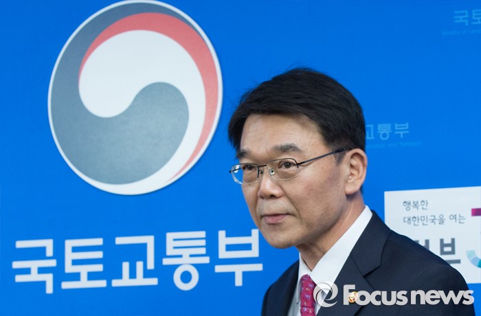 (세종=포커스뉴스) 강호인 국토교통부장관이 27일 오후 세종시 정부세종청사 국토부 기자실에서 맞춤형 주거지원을 통한 주거비 경감 방안을 발표하기 위해 당상을 오르고 있다.