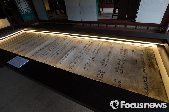 (서울=포커스뉴스) 27일 오후 서울 종로구 경복궁 집옥재 내부에 박세당의 장원급제 답안지가 전시되어 있다.