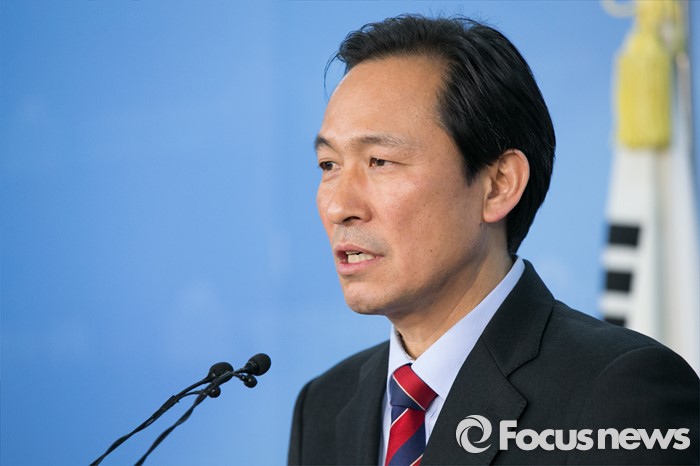 (서울=포커스뉴스) 우상호 더불어민주당 의원이 29일 오후 서울 여의도 국회 정론관에서 당 원내대표 출마 기자회견을 하고 있다.