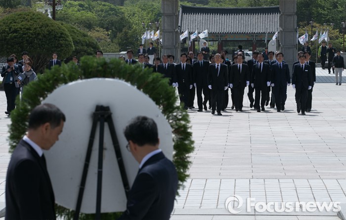 (광주=포커스뉴스) 김종인 더불어민주당 비대위 대표가 25일 오전 광주 북구 국립 5·18민주묘지를 방문해 20대 총선 당선인 및 광주·전남지역 낙선 인사들과 참배를 위해 이동하고 있다.