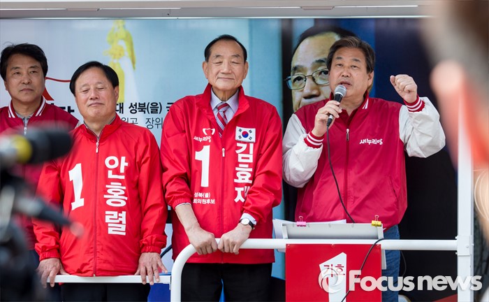 이어 "원유철 대행이 당 지도부 선거에 나가냐"는 기자의 질문엔 "나가겠나?"고 반문, 원 대행의 전당대회 출마 가능성을 즉각 일축하기도 했다.(서울=포커스뉴스) 7일 오후 서울 성북구 장위시장 앞에서 열린 김효재 새누리당 성북구을 후보 지원유세에 나선 김무성 대표가 유권자들의 지지를 호소하고 있다. 2016.04.07 양지웅 기자