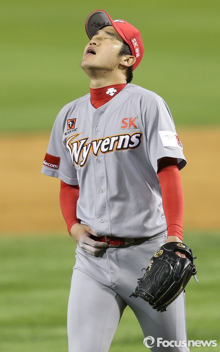 (서울=포커스뉴스) 27일 서울 잠실구장에서 열린 2016 프로야구 SK-두산 경기에서 6.2 이닝을 무실점으로 막은 SK 투수 박종훈이 마운드를 내려가고 있다.