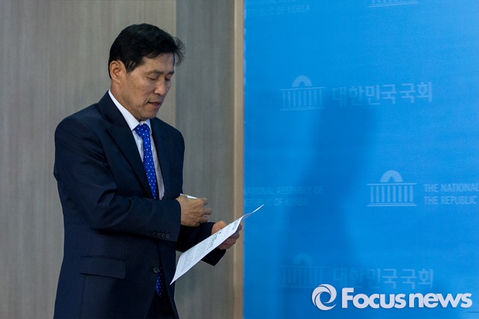 (서울=포커스뉴스) 이학영 더불어민주당 의원이 2일 오전 서울 여의도 국회에서 테러방지법 시행 관련 기자회견을 하기 위해, 기자회견장으로 들어서고 있다.