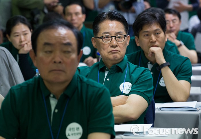 (양평=포커스뉴스) 박지원(가운데) 국민의당 의원과 20대 총선 당선인들이 26일 오후 경기도 양평 한화리조트에서 열린 20대 총선 당선인 워크숍에 참석해 김병준 전 대통령 정책실장의 강연을 경청하고 있다.