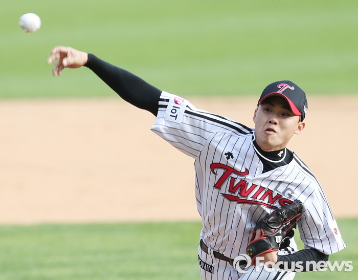 (서울=포커스뉴스) 1일 서울 잠실구장에서 열린 2016 프로야구 kt-LG 경기에서 세이브를 따낸 LG 투수 임정우가 9회초 투구하고 있다.
