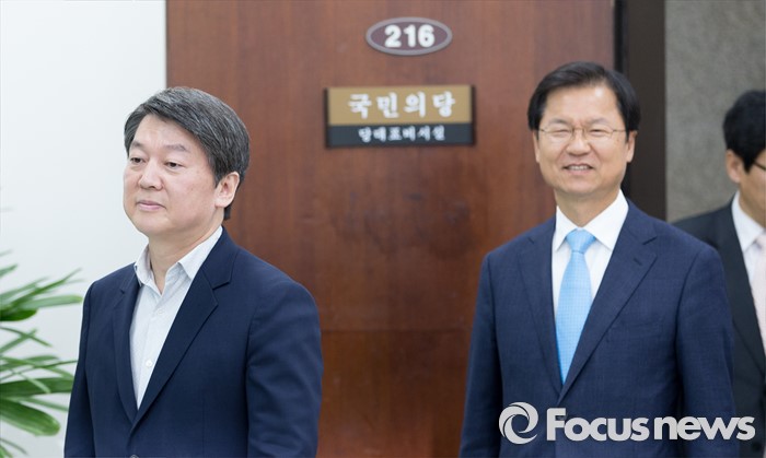 (서울=포커스뉴스) 안철수(왼쪽) 국민의당 상임공동대표와 천정배 공동대표가 29일 오전 서울 여의도 국회에서 최고위원회의에 참석하고 있다.