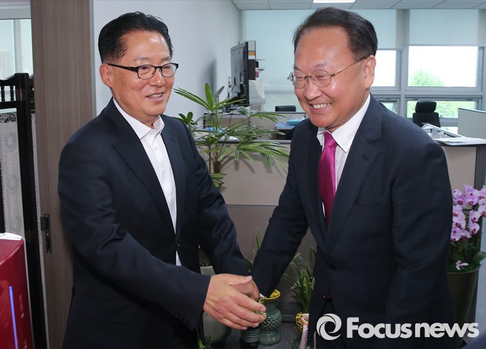 한편, 박 원내대표에 이어 유 부총리와 만난 장병완 국민의당 정책위의장은 보건의료분야 포함 여부를 놓고 여야가 대립하고 있는 서비스산업발전법에 대해 "아예 제정이 안 되는 것보다 (보건의료를) 빼고서라도 일단 제정하는 게 진일보라고 생각해야하지 않겠나"라며 절충안을 제시하기도 했다.(서울=포커스뉴스) 박지원(왼쪽) 국민의당 원내대표가 29일 오전 서울 여의도 국회 의원회관에서 경제활성화법안 등 처리 요청을 위해 방문한 유일호 경제부총리 겸 기획재정부 장관과 면담에 앞서 인사하고 있다. 2016.04.29 박동욱 기자