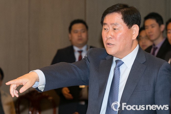 (서울=포커스뉴스) 최경환 새누리당 의원이 25일 오후 서울 여의도의 한 중식당에서 열린 중진의원 오찬 간담회에 참석해, 의원들과 대화하고 있다.