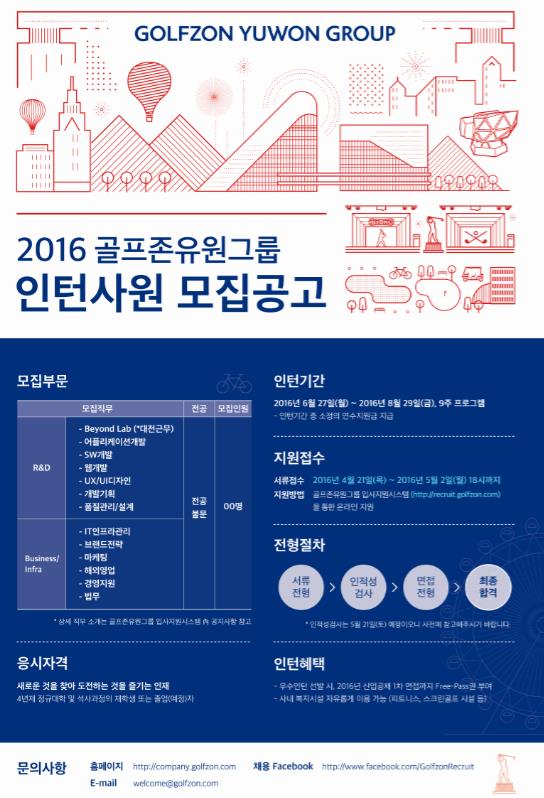 모집 부문별로 전공에 상관없이 4년제 정규대학 및 석사 과정의 재학생 또는 졸업(예정)자라면 누구나 지원 가능하며, 골프존유원그룹 입사지원시스템(recruit.golfzon.com)을 통해 지원하면 된다.