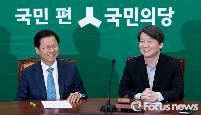 (서울=포커스뉴스) 안철수 국민의당 상임공동대표와 천정배 공동대표가 25일 오전 서울 여의도 국회에서 최고위원회의에 참석해 환하게 웃고 있다.